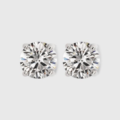 Women's Sterling Silver Cubic Zirconia Stud Earrings - A New Day™ Silver/Clear: Polished Nickel-Free Basket Setting