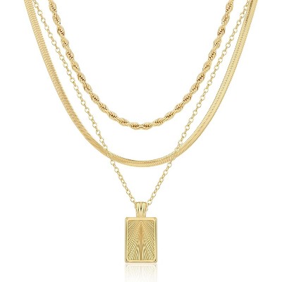 A-Z Initial Letter Necklace: 14K Gold Plated Square Monogram Pendant On Figaro Chain, Unisex Personalized Jewelry Gift