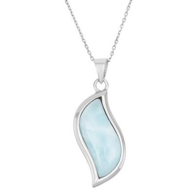 Opalata Sterling Silver Blue Inlay Opal Whale Tail 18" Pendant Necklace - Blue