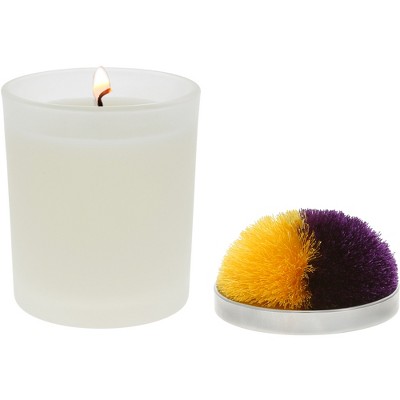 Pavilion Gift Company - Blank - Purple & Yellow - 5.5 oz - 100% Soy Wax Candle with Pom Pom Lid Scent: Tranquility - Flame Candles