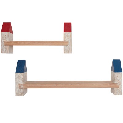 Set of 2 Wood Light House White Washed Wall with Red and Blue Accents - Olivia & May: Nautical Floating Shelves, No Assembly Required