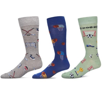 MeMoi Men's 3 Pair Pack Novelty Sports Crew Socks