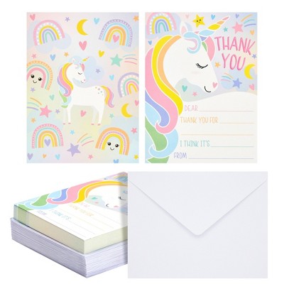 Paper Junkie 36 Pack Unicorn Fill in the Blank Thank You Cards with Envelopes for Kids, 5.5 x 4.2 Inches