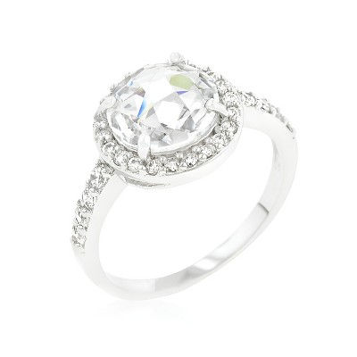 Slickblue Classic Silvertone Pave Bridal Ring Wedding Ring for Women- 6.2 Ct Clear Round CZ, Rhodium Plated