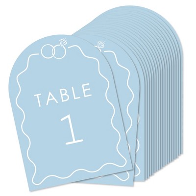 Big Dot of Happiness Dusty Blue Wedding Rings Table Numbers Centerpieces, Double-Sided 5 x 7 inches Cards, Table Numbers - 1-20