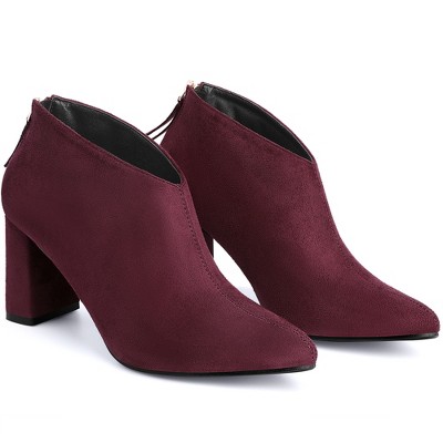 Perphy Women's Pointed Toe Zippered Block Heels Ankle Booties