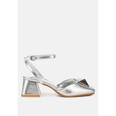 Berness Women's Jennifer Patent Slingback Kitten Heels with Geometric Embellishment