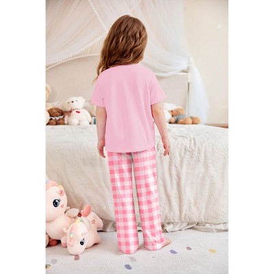 Arshiner Girls' Sleepwear Short Sleeve Long Pants Pajamas Sets Soft Loungwear for Kids