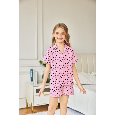 Arshiner Girls Pajamas Sets Short Sleeve Kids Pjs Button Down Sleepwear for 4-13Y
