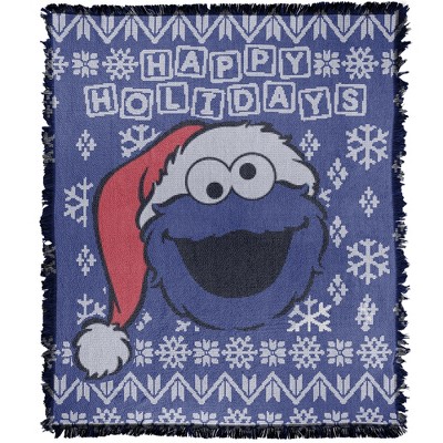 Sesame Street Cookie Monster Ugly Christmas Blanket 50"x60" Woven Tapestry