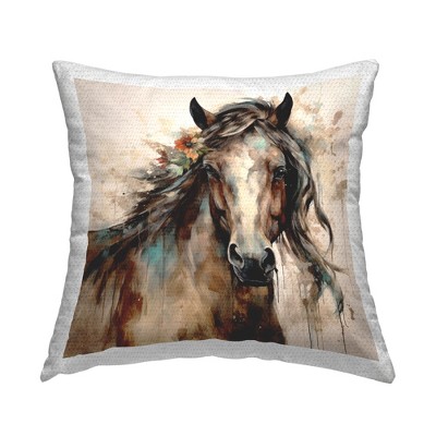 Stupell Industries Abstract Horse & Florals Outdoor Decorative Throw Pillow, 18 x 18