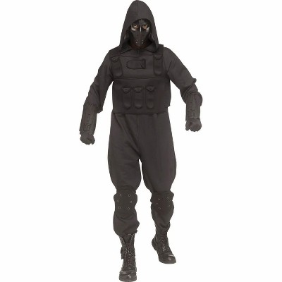 Fun World Adult Warcore Fighter Hooded Halloween Costume Jumpsuit - Black One Size