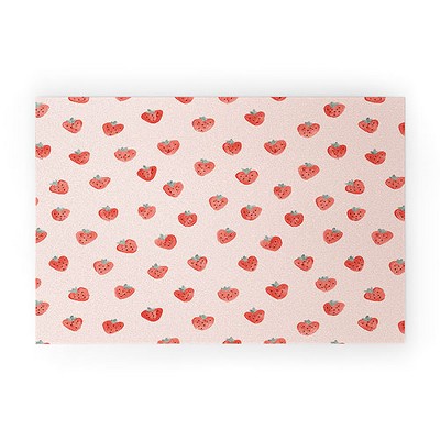 Emanuela Carratoni Strawberries on Pink Looped Vinyl Welcome Mat - Society6