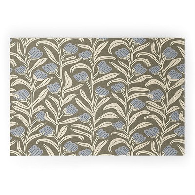 Alisa Galitsyna Bellflower Pattern Cream Olive Looped Vinyl Welcome Mat - Society6