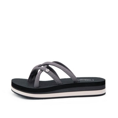 CUSHIONAIRE Luxor Sandals for Women, Strappy Flat Thong Womens Sandals with Adjustable Ankle Strap and Memory Foam