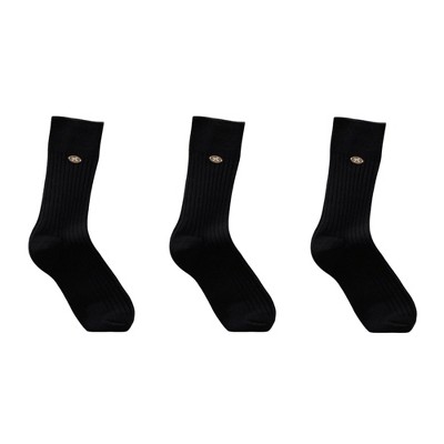 Anna-Kaci Women's 3-Pair Ribbed Crew Socks Soft Stretch Knit with Subtle Embblem Detail Comfortable Everyday Sock Set - Black