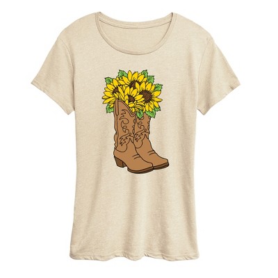 Women's - Instant Message - Cowgirl Boots With Sunflowers Short Sleeve Graphic T-Shirt