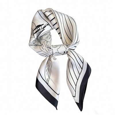 INSPIRE CHIC Women's Fashion Printed Skinny Long Satin Silky Black White Neck Scarves 1Pc