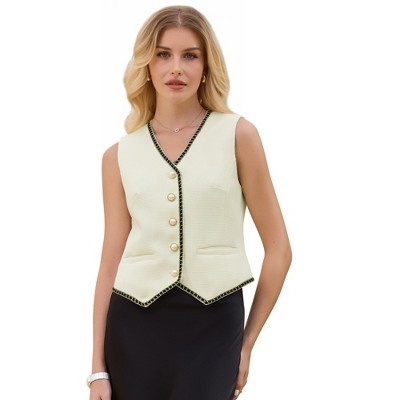 Allegra K Women's Tweed Notched Lapel Vintage Plaid Crop Sleeveless Waistcoat Vest
