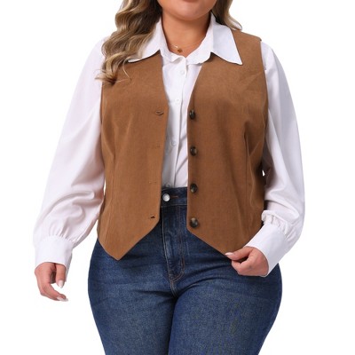 Women's Plus Size Corduroy Button Down V-neck Sleeveless Waistcoat Business Casual Vest - Agnes Orinda