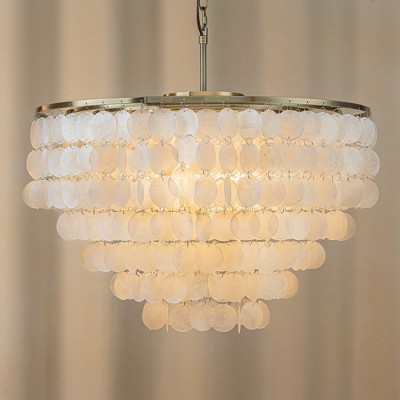 ALOADECOR 3-Light W13" Capiz Shell Chandelier Small Coastal Pendant Light