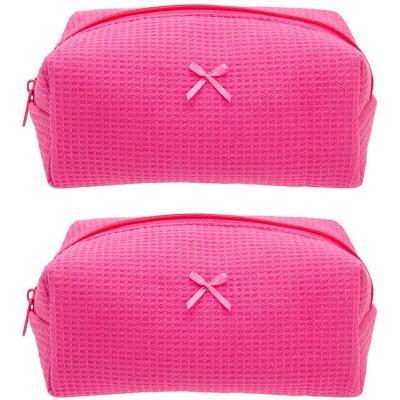 Narwey Makeup Bag Set 2, Cute Cosmetic Pouch, Pink Floral Bow Pattern, Cotton, Lightweight, 2 Count, Zipper Closure