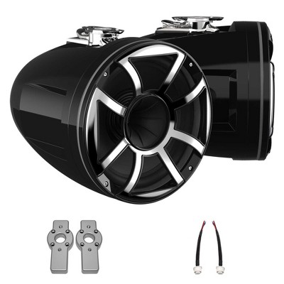 Wet Sounds REV 10 HD 10" Horn Loaded Compression Driver Tower Speakers with XW Grills & Stainless Swivel Base Mount, 300 Watts RMS, Black, Pair wit...