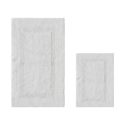 Heavyweight Cotton Bath Mats, Washable Rug for Shower, 22x 35, White, Set of 2, No Backing, Luxury Hotel Quality