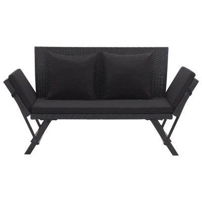 vidaXL Patio Bench Adjustable with Cushions for Outdoor Garden Poly Rattan - Black