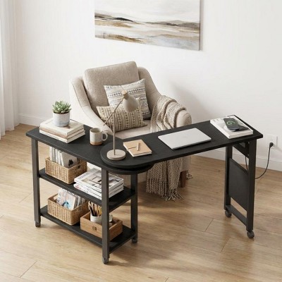 360° Rotating Sofa Side Table with Charging Station, 3-Tier Mobile End Table Swivel Rolling Desk with 6 Lockable Wheels, Movable Laptop Table