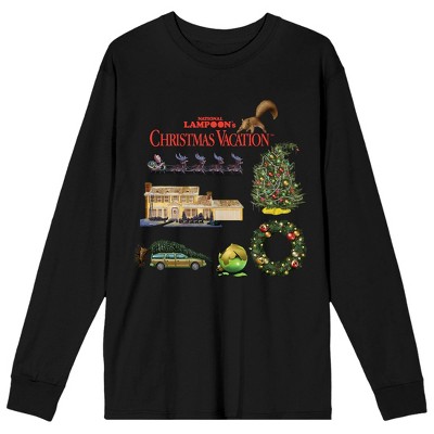 National Lampoon's Christmas Vacation Movie Icons Collage Women's Black Crew Neck Long Sleeve Tee