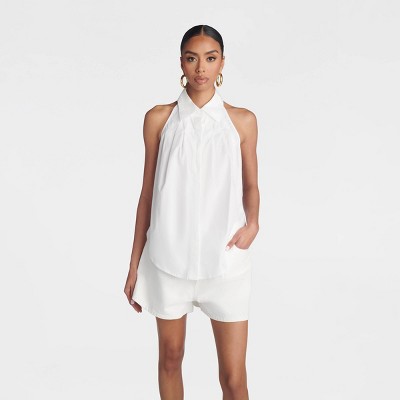 Alfred Dunner Womens Petite Embroidered Flower Collared Button Front Top, White, Size PS
