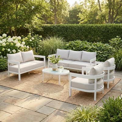 white aluminum patio set
