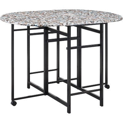 Kings Brand Furniture – Akins 3-Piece Drop-Leaf Dinette Set with Faux Marble Tabletop and Faux Leather Stools