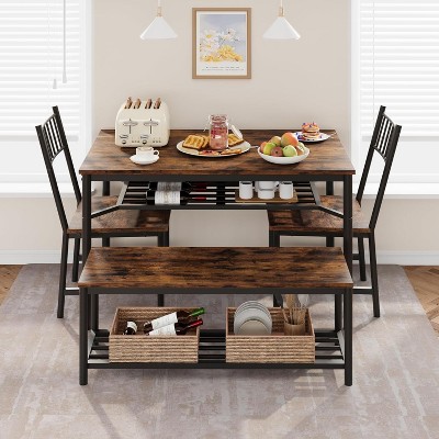 Gulches 4-Person Industrial Dining Set - 43.3"L Natural & White Table + 2 Benches, Space-Saving Counter Height for Kitchen/Living Room/Party Room