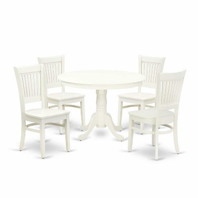 HomeStock 5-Pc Linen White Finish Solid Wood Top-Round Dining Room Set with Dropleaf-Seats 4