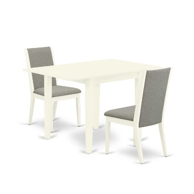 HomeStock 3-Pc Linen White Finish Rectangular Solid Wood Top with Dropleaf Dining Table Set