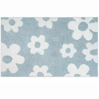 HomeRoots 32" Blue And White Cotton Floral Bath Rug