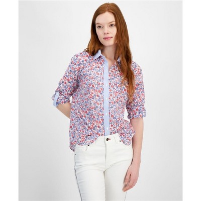 I.N.C International Concepts Womens Ruffled Floral Cold Shoulder Blouse