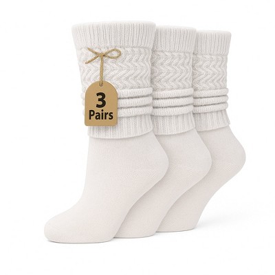 Women’s Lightweight Cotton Slouch Socks Over-the-Calf Knee-High Scrunch Socks 3 Pairs Shoe Size 5-10