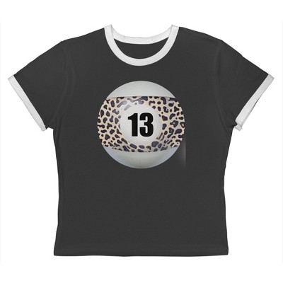 Rerun Island Women's 13 Ball Animal Print Short Sleeve Graphic Cotton Retro Vintage Ranger Baby Tee - Caviar White S