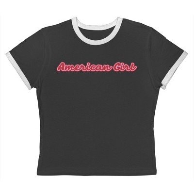 Rerun Island Women's Americana Girl Script Font Americana 4Th Of July Short Sleeve Graphic Cotton Retro Vintage Ranger Baby Tee - Caviar White M