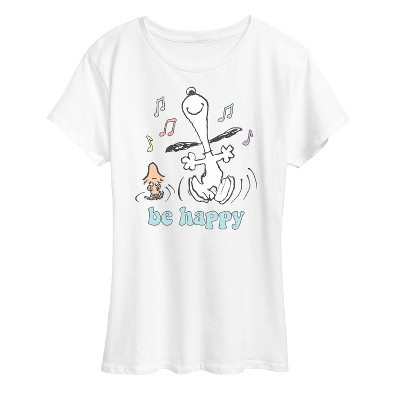 Women's - Peanuts - Be Happy Snoopy And Woodstock Short Sleeve Graphic T-Shirt
