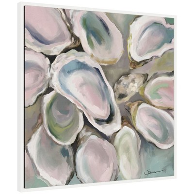 Kate and Laurel Sylvie Oyster Roast Framed Canvas by Mary Sparrow, 30x30 Sylvie White