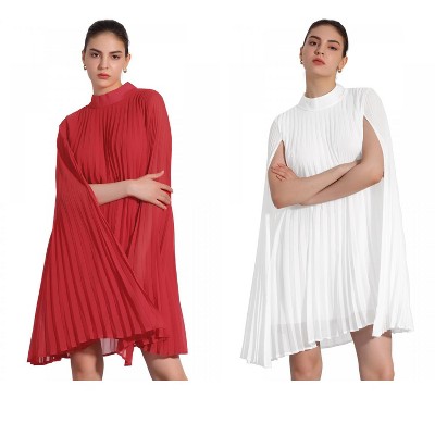 INSPIRE CHIC Women's Loose Flowy Cloak Sleeve Cape Pleated Chiffon Dress 2 Packs