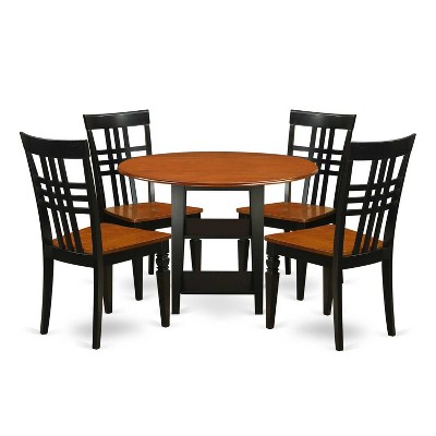 5-Piece Black and Cherry Finish Solid Wood Top - Dining Room Set - Seats 4