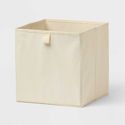 Narrow Medium Decorative Plastic Bin White - Brightroom™: Modern Storage, Cut-Out Handles, 13" Cube Compatible