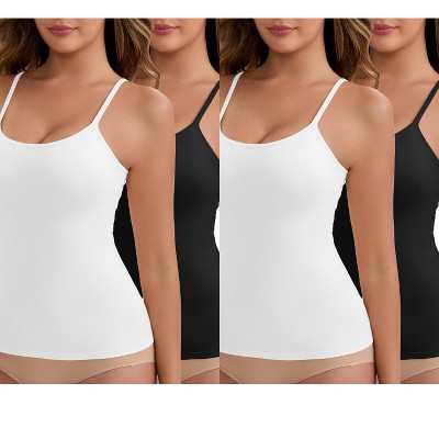 INSPIRE CHIC Women's Modal Adjustable Spaghetti Straps Padded Slimming Round Neck Casual Camisoles Multipacks