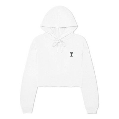 Dalix Salty Embroidery Fleece Hoodie Cropped Long Sleeve Drawstring Fall Spring Womens