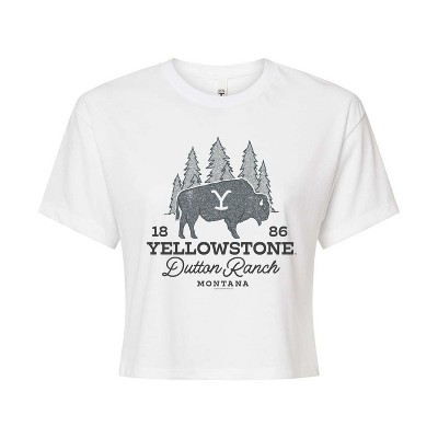 Women's - Yellowstone - Dutton Ranch Bison Sketch Cropped Graphic T-Shirt